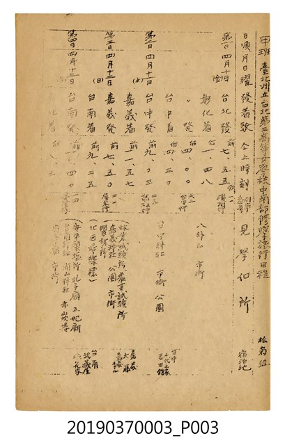 臺北州立臺北第三高等女學校,三高女,女學生,修學旅行,畢業旅行,行程表