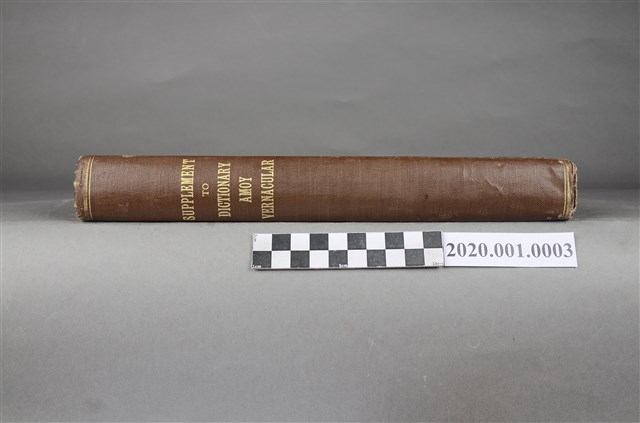 《廈英大辭典》原為1873年英國長老教會宣教師杜嘉德(Carstairs Douglas)編輯出版;1923年由巴克禮牧師(Rev.Thomas Barclay)增補,此書便是增補本。此書以廈門腔為主體,原書全無漢字,巴克禮增補添有漢字。此書原為臺南作家劉青雲所藏。
