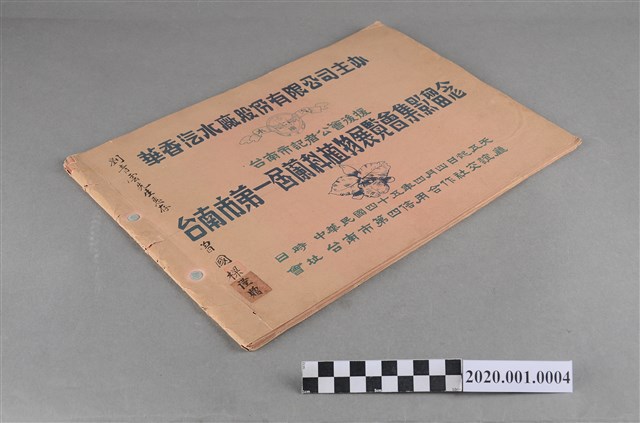 臺南市於1956年舉辦第一屆蘭科植物展覽會,由華香汽水主辦,臺南市記者公會協助攝影。本書除了活動影像之外,附有參展蘭科植物種類、出品者、出產地等資料。此為華香汽水董事長曾國樑贈與臺南作家劉青雲。