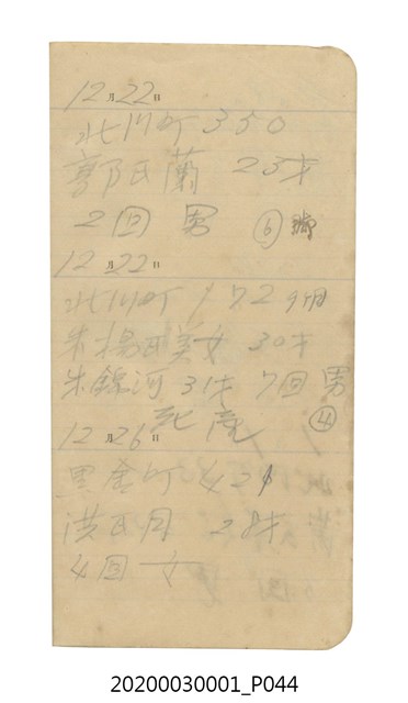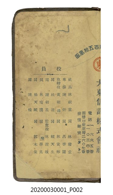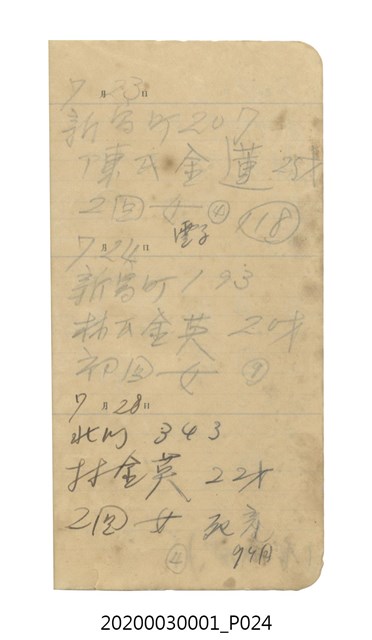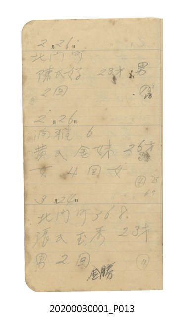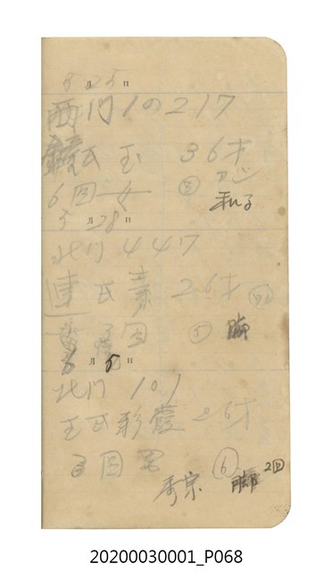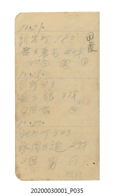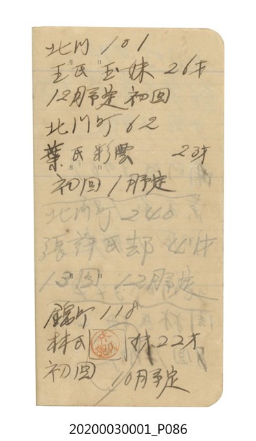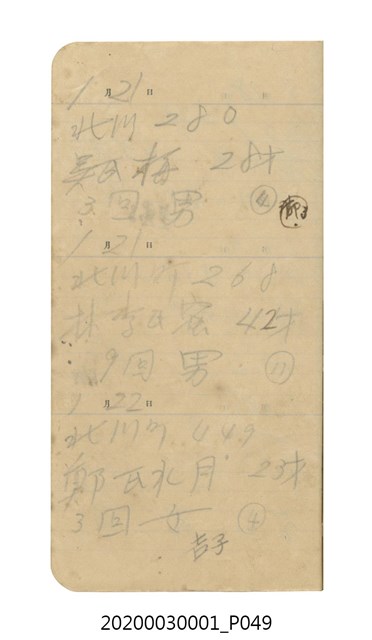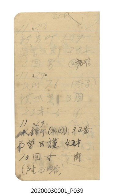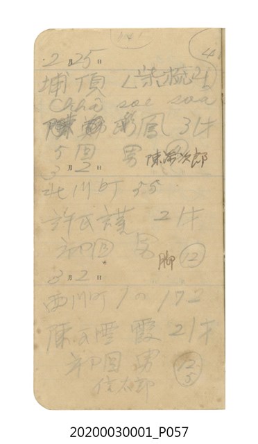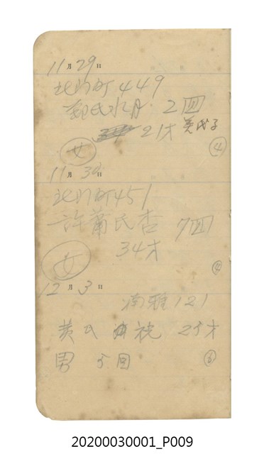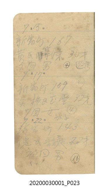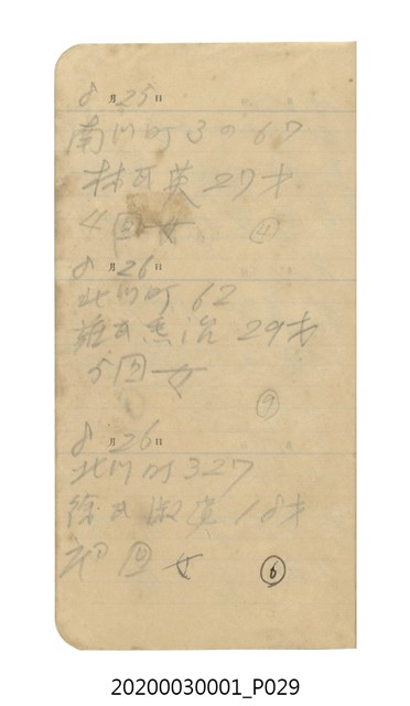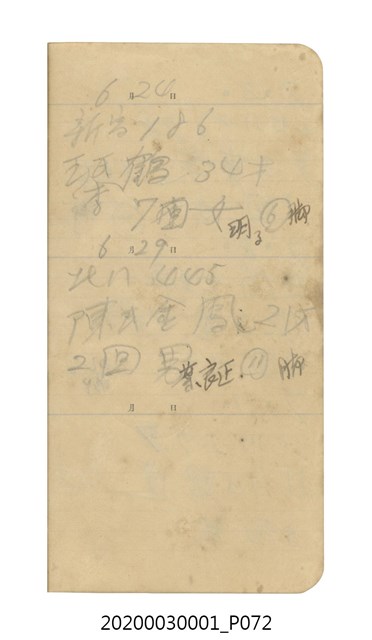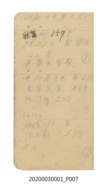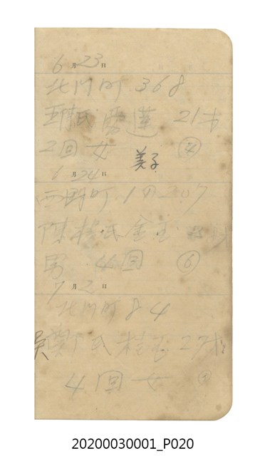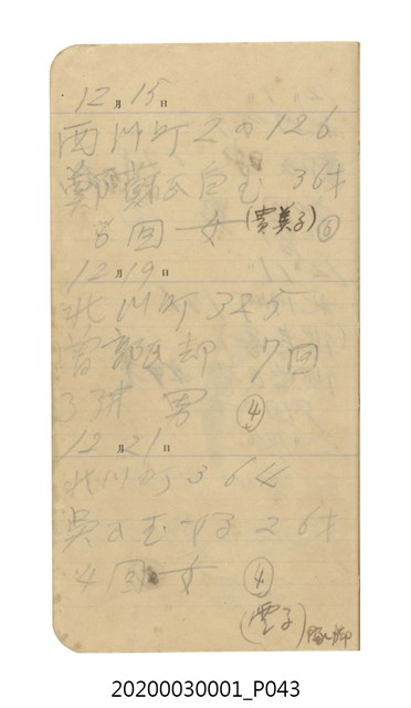 本文物為1941年9月21至1943年10月15日黃陳梅麗助產士小筆記本。黃陳梅麗(1920-2019)助產士,1937年畢業於臺北市蓬萊產婆講習所,1941年申請新竹州產婆許可證,同年於新竹市開業,至1984年退休。小筆記本為黃陳梅麗女士外出接生時隨身攜帶、便於紀錄之手稿,歸家後再正式謄抄於助產簿或工作簿中,紀錄時間從1941年至1983年,數量共計32本,為臺灣日治至戰後助產士第一手工作史料。筆記內容記載黃陳梅麗協助生產的工作對象資訊,包含姓名、地點、產婦分娩次數、分娩情形及初生兒健康情形等,按助產日期紀錄。該筆記本同時載有黃陳梅麗日常生活及支出等,書寫文字為漢字、日文及白話字,內頁有大東信託多株式會社廣告及當年份農民曆。