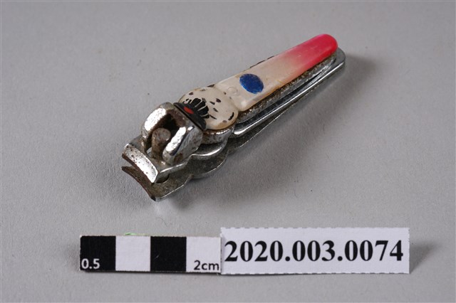本文物為黃陳梅麗助產用指甲剪。黃陳梅麗除助產外,同時也會協助產後護理、回診訪視、幫新生兒洗澡。此指甲剪為嬰兒用。