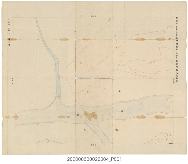 1.本物件為〈南投郡草屯庄雙冬地圖謄本〉三十六葉,一共有10本,分別是32、30、23、16、15、10、8、6、5、4號,每本封面皆寫上「草屯庄雙冬第三十六葉之內」字樣,封面皆為綠色書皮,內頁翻開後為白色紙張畫上地圖並著顏色,旁邊並寫有「南投郡草屯庄雙冬地圖謄本三十六頁之內第四號一筆」,另一邊則寫有時間為大正十二年十二月三日,所有物件雖有些許泛黃但保存尚可。2.草屯庄,為1920 -1938年間存在之行政區,轄屬臺中州南投郡,1942年升格為草屯街,戰後成為今南投縣草屯鎮,而雙冬地區大致包括雙冬里、平林里、土城里東部。