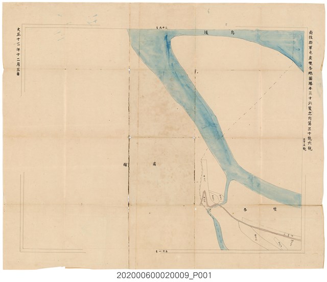 1.本物件為〈南投郡草屯庄雙冬地圖謄本〉三十六葉,一共有10本,分別是32、30、23、16、15、10、8、6、5、4號,每本封面皆寫上「草屯庄雙冬第三十六葉之內」字樣,封面皆為綠色書皮,內頁翻開後為白色紙張畫上地圖並著顏色,旁邊並寫有「南投郡草屯庄雙冬地圖謄本三十六頁之內第四號一筆」,另一邊則寫有時間為大正十二年十二月三日,所有物件雖有些許泛黃但保存尚可。2.草屯庄,為1920 -1938年間存在之行政區,轄屬臺中州南投郡,1947年升格為草屯街,戰後成為今南投縣草屯鎮,而雙冬地區大致包括雙冬里、平林里、土城里東部。