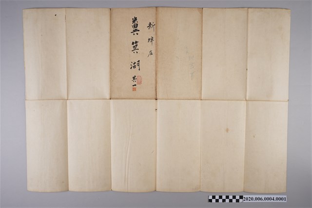 1.本物件為〈新埤庄地圖〉,一共有4本,分別為「新埤 全」、「南岸 全」、「糞萁湖 其一」、「糞萁湖 其二」,每本的外觀收納起來皆為長方形,打開則為該地區的圖形說明,其中一頁為「阿緱廳港東中里新埤頭庄」地圖,除了畫有地圖,並有文字說明,所有物件保存尚可,僅有些許泛黃。2.新埤庄,為1920年-1945年間存在的行政區,轄屬高雄州潮州郡,並立新埤庄役場為行政中心,今屏東縣新埤鄉,根據日治時代的1935年的國勢調查,新埤庄內有60%左右的客家人與26%的熟番,今日當地獅頭、餉潭兩社區普遍被認定為是馬卡道族的聚落,客家屬六堆中的左堆,其主要產業活動為一級產業。