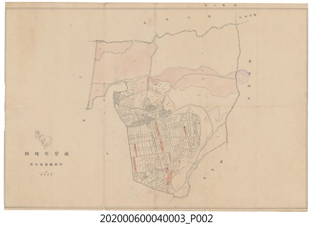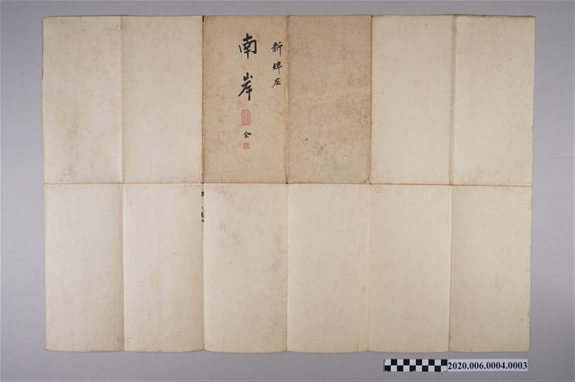 1.本物件為〈新埤庄地圖〉,一共有4本,分別為「新埤 全」、「南岸 全」、「糞萁湖 其一」、「糞萁湖 其二」,每本的外觀收納起來皆為長方形,打開則為該地區的圖形說明,其中一頁為「阿緱廳港東中里新埤頭庄」地圖,除了畫有地圖,並有文字說明,所有物件保存尚可,僅有些許泛黃。2.新埤庄,為1920年-1945年間存在的行政區,轄屬高雄州潮州郡,並立新埤庄役場為行政中心,今屏東縣新埤鄉,根據日治時代的1935年的國勢調查,新埤庄內有60%左右的客家人與28%的熟番,今日當地獅頭、餉潭兩社區普遍被認定為是馬卡道族的聚落,客家屬六堆中的左堆,其主要產業活動為一級產業。
