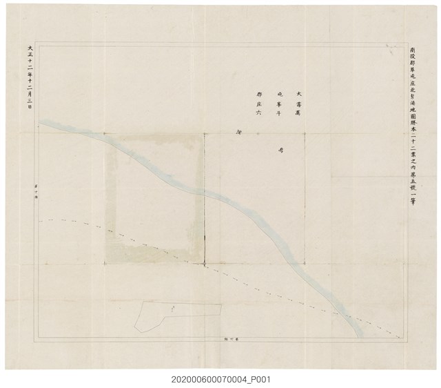 1.本物件為〈一千二百分之一北勢湳地圖〉謄本,一共有21本,每本封面皆寫上「北勢湳第 號」字樣,大多封面為白色書皮,內頁翻開後為白色紙張寫有「北勢湳地圖謄本 臺中州南投郡草屯庄 縮尺千二百分之一 總計九百七十三筆」,地圖謄本的另一邊則寫有時間為大正十二年十二月三日,及臺中州知事 常吉德寿,所有物件雖有些許泛黃但保存尚可。2.北勢湳,是臺灣南投縣草屯鎮的一個傳統地域名稱,位於該鎮中部北側,1920年,全臺地方制度大改正,廢十二廳改設五州二廳,該庄改制為「北勢湳」大字,隸屬於臺中州南投郡草屯庄。1938年,草屯庄升格為草屯街。