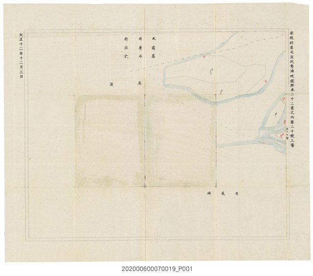 1.本物件為〈一千二百分之一北勢湳地圖〉謄本,一共有21本,每本封面皆寫上「北勢湳第 號」字樣,大多封面為白色書皮,內頁翻開後為白色紙張寫有「北勢湳地圖謄本 臺中州南投郡草屯庄 縮尺千二百分之一 總計九百七十三筆」,地圖謄本的另一邊則寫有時間為大正十二年十二月三日,及臺中州知事 常吉德寿,所有物件雖有些許泛黃但保存尚可。2.北勢湳,是臺灣南投縣草屯鎮的一個傳統地域名稱,位於該鎮中部北側,1920年,全臺地方制度大改正,廢十二廳改設五州二廳,該庄改制為「北勢湳」大字,隸屬於臺中州南投郡草屯庄。1938年,草屯庄升格為草屯街。