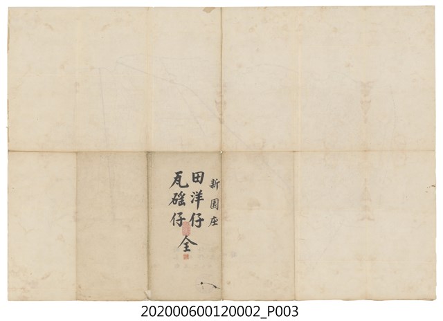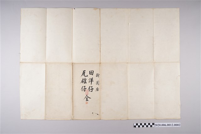 1.本物件為〈六千分之一新園庄地圖〉謄本,一共有8本,分別為「新園庄 洲仔 全」、「新園庄 田洋仔瓦磘仔 全」、「新園庄 過溪 全」、「新園庄 崁頂 全」、「新園庄 仙公廟 全」、「新園庄 烏龍 全」、「新園庄 力社 全」、「新園庄 新園 全」,每本的外觀收納起來皆為長方形,打開則為該地區的圖形說明,其中一頁寫有「東港郡 烏龍庄地圖 縮尺六千分之一」,除了畫有地圖,並有文字說明,所有物件保存尚可,僅有些許泛黃。 2.新園庄,為1920年至1947年間存在之行政區,轄屬高雄州東港郡,為今屏東縣新園鄉及崁頂鄉,其地名由來有兩種說法:一說是約在明末清初時代,有福建漢族移民黃上房、蕭發現等四人率眾來此地開墾,在本鄉下淡水溪畔建立家園,故稱之為「新園」;二是早期此地並無水源灌溉,而漢人慣稱水田為「田」,旱田為「園」,故將此地稱之為「新園」,意指新開墾的旱田。