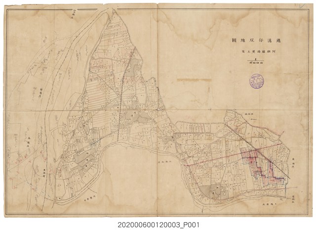 1.本物件為〈六千分之一新園庄地圖〉謄本,一共有8本,分別為「新園庄 洲仔 全」、「新園庄 田洋仔瓦磘仔 全」、「新園庄 過溪 全」、「新園庄 崁頂 全」、「新園庄 仙公廟 全」、「新園庄 烏龍 全」、「新園庄 力社 全」、「新園庄 新園 全」,每本的外觀收納起來皆為長方形,打開則為該地區的圖形說明,其中一頁寫有「東港郡 烏龍庄地圖 縮尺六千分之一」,除了畫有地圖,並有文字說明,所有物件保存尚可,僅有些許泛黃。 2.新園庄,為1920年至1948年間存在之行政區,轄屬高雄州東港郡,為今屏東縣新園鄉及崁頂鄉,其地名由來有兩種說法:一說是約在明末清初時代,有福建漢族移民黃上房、蕭發現等四人率眾來此地開墾,在本鄉下淡水溪畔建立家園,故稱之為「新園」;二是早期此地並無水源灌溉,而漢人慣稱水田為「田」,旱田為「園」,故將此地稱之為「新園」,意指新開墾的旱田。