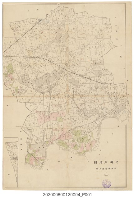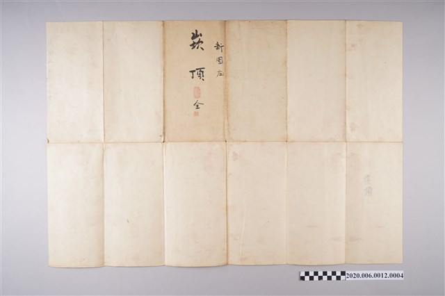1.本物件為〈六千分之一新園庄地圖〉謄本,一共有8本,分別為「新園庄 洲仔 全」、「新園庄 田洋仔瓦磘仔 全」、「新園庄 過溪 全」、「新園庄 崁頂 全」、「新園庄 仙公廟 全」、「新園庄 烏龍 全」、「新園庄 力社 全」、「新園庄 新園 全」,每本的外觀收納起來皆為長方形,打開則為該地區的圖形說明,其中一頁寫有「東港郡 烏龍庄地圖 縮尺六千分之一」,除了畫有地圖,並有文字說明,所有物件保存尚可,僅有些許泛黃。 2.新園庄,為1920年至1949年間存在之行政區,轄屬高雄州東港郡,為今屏東縣新園鄉及崁頂鄉,其地名由來有兩種說法:一說是約在明末清初時代,有福建漢族移民黃上房、蕭發現等四人率眾來此地開墾,在本鄉下淡水溪畔建立家園,故稱之為「新園」;二是早期此地並無水源灌溉,而漢人慣稱水田為「田」,旱田為「園」,故將此地稱之為「新園」,意指新開墾的旱田。