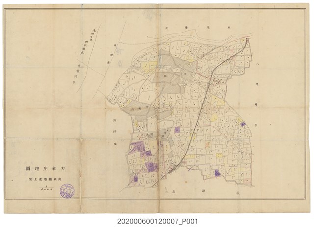 1.本物件為〈六千分之一新園庄地圖〉謄本,一共有8本,分別為「新園庄 洲仔 全」、「新園庄 田洋仔瓦磘仔 全」、「新園庄 過溪 全」、「新園庄 崁頂 全」、「新園庄 仙公廟 全」、「新園庄 烏龍 全」、「新園庄 力社 全」、「新園庄 新園 全」,每本的外觀收納起來皆為長方形,打開則為該地區的圖形說明,其中一頁寫有「東港郡 烏龍庄地圖 縮尺六千分之一」,除了畫有地圖,並有文字說明,所有物件保存尚可,僅有些許泛黃。 2.新園庄,為1920年至1952年間存在之行政區,轄屬高雄州東港郡,為今屏東縣新園鄉及崁頂鄉,其地名由來有兩種說法:一說是約在明末清初時代,有福建漢族移民黃上房、蕭發現等四人率眾來此地開墾,在本鄉下淡水溪畔建立家園,故稱之為「新園」;二是早期此地並無水源灌溉,而漢人慣稱水田為「田」,旱田為「園」,故將此地稱之為「新園」,意指新開墾的旱田。