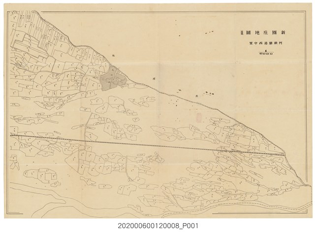 1.本物件為〈六千分之一新園庄地圖〉謄本,一共有8本,分別為「新園庄 洲仔 全」、「新園庄 田洋仔瓦磘仔 全」、「新園庄 過溪 全」、「新園庄 崁頂 全」、「新園庄 仙公廟 全」、「新園庄 烏龍 全」、「新園庄 力社 全」、「新園庄 新園 全」,每本的外觀收納起來皆為長方形,打開則為該地區的圖形說明,其中一頁寫有「東港郡 烏龍庄地圖 縮尺六千分之一」,除了畫有地圖,並有文字說明,所有物件保存尚可,僅有些許泛黃。 2.新園庄,為1920年至1953年間存在之行政區,轄屬高雄州東港郡,為今屏東縣新園鄉及崁頂鄉,其地名由來有兩種說法:一說是約在明末清初時代,有福建漢族移民黃上房、蕭發現等四人率眾來此地開墾,在本鄉下淡水溪畔建立家園,故稱之為「新園」;二是早期此地並無水源灌溉,而漢人慣稱水田為「田」,旱田為「園」,故將此地稱之為「新園」,意指新開墾的旱田。