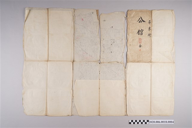 1.本物件為〈六千分之一屏東街地圖〉謄本,一共有4本,為「屏東街 海豐 全」2冊、「屏東街 頭前溪 全」、「屏東街 公館 全」,其外觀收納起來為長方形,打開則為該地區的圖形說明,其中一頁寫有「海豐庄地圖 縮尺六千分之一」,除了畫有地圖,並有文字說明,所有物件保存尚可,僅有些許泛黃。2.屏東街,為1920年~1933年間存在之行政區,轄屬高雄州屏東郡,今屏東縣屏東市,並設置屏東市役所,在1939年,為了行政管理方便,將屏東市分區,每區設置區長,負責行政傳達、區內環境改善等事務。