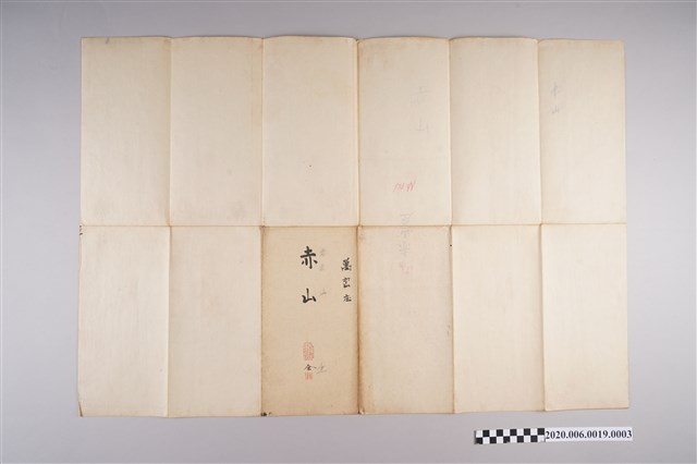 1.本物件為〈六千分之一萬巒庄地圖〉謄本,一共有3本,為「萬巒庄 新厝 全」、「萬巒庄 加佐 全」、「萬巒街 赤山 全」,其外觀收納起來為長方形,打開則為該地區的圖形說明,其中一頁寫有「新厝庄圖 阿緱廳港東上里 縮尺六千分之壹」,除了畫有地圖,並有文字說明,所有物件保存尚可,僅有些許泛黃。2.萬巒庄,為1920年~1948年間存在之行政區,轄屬高雄州潮州郡。今屏東縣萬巒鄉,清朝舊稱戀戀庄、蠻蠻庄、萬蠻庄,水源充足且穩定,屬於六堆地區較為富庶的聚落,先帝廟是萬巒三村信仰中心,廟前廣場是昔日六堆的練兵場,廟內掛著大正年間仿清乾隆皇帝頒封的「褒忠」匾。