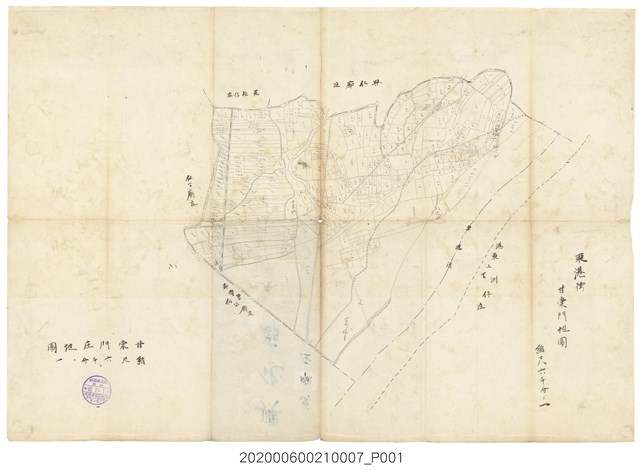 1.本物件為〈六千分之一萬丹庄地圖〉謄本,一共有8本,為「萬丹庄 社皮全」、「萬丹庄 保長厝 全」、「萬丹庄 萬丹 全」、「萬丹庄 濫庄 全」、「萬丹庄 下蚶 全」、「萬丹庄 興化廍 全」2冊、「萬丹庄 新庄子 全」,其外觀收納起來為長方形,打開則為該地區的圖形說明,其中一頁寫有「萬丹庄地圖 阿緱廳港西下里 縮尺六千分之一」,除了畫有地圖,並有文字說明,所有物件保存尚可,僅有些許泛黃。