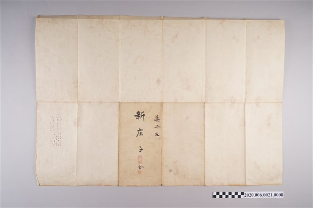 1.本物件為〈六千分之一萬丹庄地圖〉謄本,一共有8本,為「萬丹庄 社皮全」、「萬丹庄 保長厝 全」、「萬丹庄 萬丹 全」、「萬丹庄 濫庄 全」、「萬丹庄 下蚶 全」、「萬丹庄 興化廍 全」2冊、「萬丹庄 新庄子 全」,其外觀收納起來為長方形,打開則為該地區的圖形說明,其中一頁寫有「萬丹庄地圖 阿緱廳港西下里 縮尺六千分之一」,除了畫有地圖,並有文字說明,所有物件保存尚可,僅有些許泛黃。