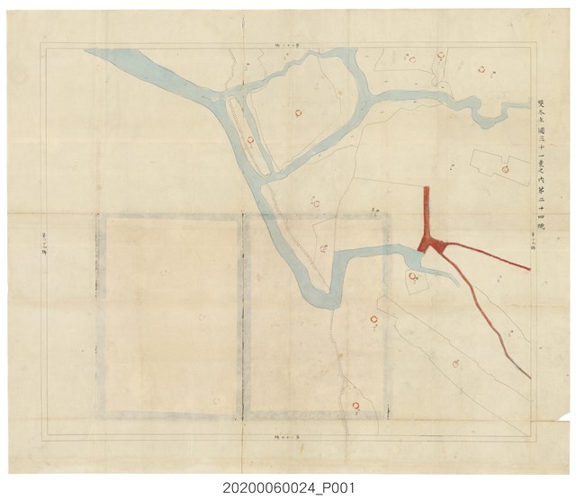 本物件為〈雙冬庄圖〉三十一葉之內第二十四號地圖謄本,一共有1本,為「雙冬 第二十四號」,其外觀收納起來為長方形,打開則為該地區的圖形說明,其中一頁寫有「雙冬庄圖三十一葉之內第二十四號」,除了畫有地圖,並有文字說明,所有物件保存尚可,僅有些許泛黃。2.臺灣清治末期至日治初期,雙冬地區為一街庄,稱為「雙冬庄」,是臺灣南投縣草屯鎮的一個傳統地域名稱,位於該鎮東部,相較於今日行政區,其範圍大致包括雙冬里、平林里、土城里東部。