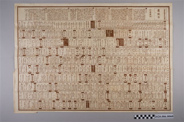 1.本物件為東京興信交通社發行〈大日本職業別明細圖:臺灣地方基隆市〉,一共2件,封面為白色底色上面畫有藍色建築物以及寫有「臺灣地方 基隆市」,另一張則在紙張上分別畫有街道及店家地圖,地圖中並穿插有黑白照片及店家商標,其主題皆為店家相關資訊,左上方寫有「大日本職業別明細圖 基隆市」,地圖正面最左邊印有印刷時間為昭和八年,發行者為小松豊及印刷所為昭明社石版所以及發行所為東京興信交通社,整個物件有明顯斑駁泛黃。2.基隆市以深水谷灣之天然港灣著名,乃臺灣最北端的都市,古名「雞籠」,日治時代後,日本將基隆建設為臺灣與日本內地的轉運樞紐,並從1899年開始到1935年進行了四期的基隆港築港工程,也是臺灣日治時代的第一大港,1920年,臺北州基隆郡設立,並另劃市區部分設置基隆街,1924年,基隆街升格為基隆市,為臺北州轄下的州轄市,乃基隆建市之始,而職業細圖主要目的在登錄當時之店家,並盡可能的將店名完整收錄於圖面上,因此僅能提供商家相關位置資訊而非絕對之地理空間位址,明細圖上之街道尺寸、角度、位置並非真實都市空間,經過調整後呈現出城市原始樣貌。。
