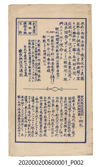 2020.006.0060.0001 東京興信交通社發行〈大日本職業別明細圖:臺灣地方基隆市〉1
