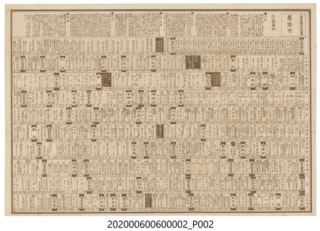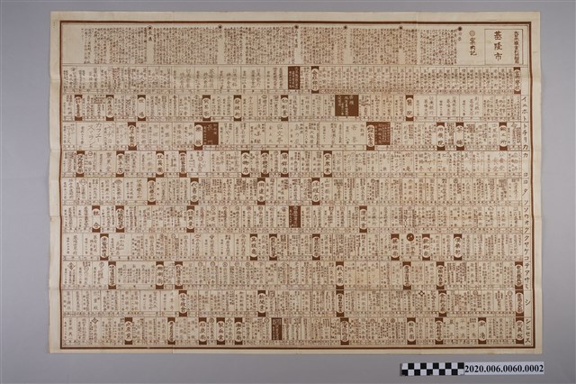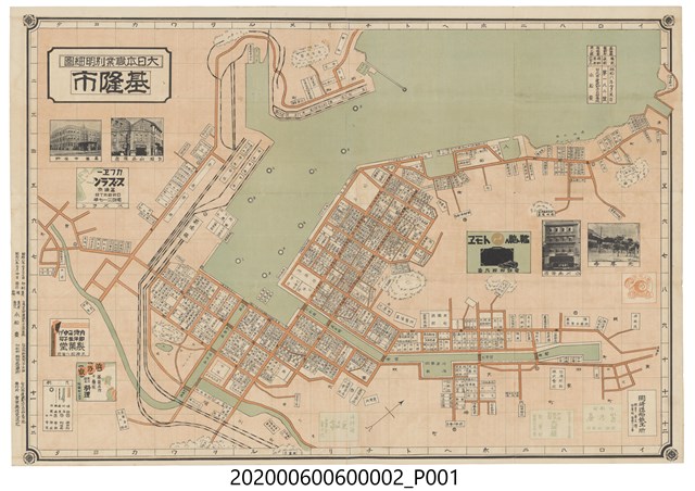 1.本物件為東京興信交通社發行〈大日本職業別明細圖:臺灣地方基隆市〉,一共2件,封面為白色底色上面畫有藍色建築物以及寫有「臺灣地方 基隆市」,另一張則在紙張上分別畫有街道及店家地圖,地圖中並穿插有黑白照片及店家商標,其主題皆為店家相關資訊,左上方寫有「大日本職業別明細圖 基隆市」,地圖正面最左邊印有印刷時間為昭和八年,發行者為小松豊及印刷所為昭明社石版所以及發行所為東京興信交通社,整個物件有明顯斑駁泛黃。2.基隆市以深水谷灣之天然港灣著名,乃臺灣最北端的都市,古名「雞籠」,日治時代後,日本將基隆建設為臺灣與日本內地的轉運樞紐,並從1899年開始到1935年進行了四期的基隆港築港工程,也是臺灣日治時代的第一大港,1920年,臺北州基隆郡設立,並另劃市區部分設置基隆街,1926年,基隆街升格為基隆市,為臺北州轄下的州轄市,乃基隆建市之始,而職業細圖主要目的在登錄當時之店家,並盡可能的將店名完整收錄於圖面上,因此僅能提供商家相關位置資訊而非絕對之地理空間位址,明細圖上之街道尺寸、角度、位置並非真實都市空間,經過調整後呈現出城市原始樣貌。。