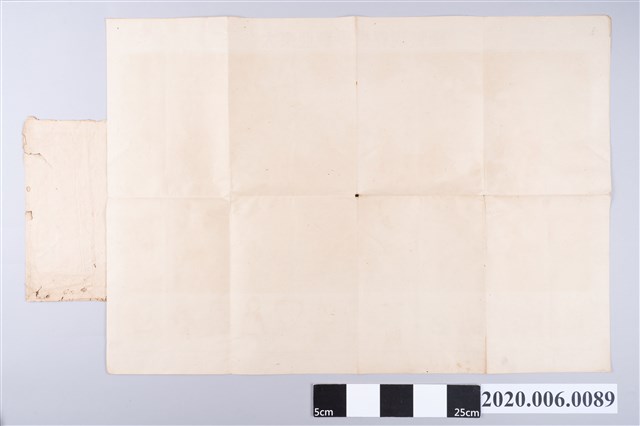 本物件為臺灣總督官房情報課發行〈大東亞戰爭世界現勢圖〉,長方形海報繪有世界地圖,為彩色並以日文書寫方式呈現,地圖最上方寫有「大東亞戰爭世界現勢圖」,下方則畫有8種不同國家種族,另一邊則畫有「南方共榮圈主要產物」,地圖左編寫有印刷與發行時間,印刷人田淵虎松以及發行所為臺灣總督官房情報課,整個物件保存良好。