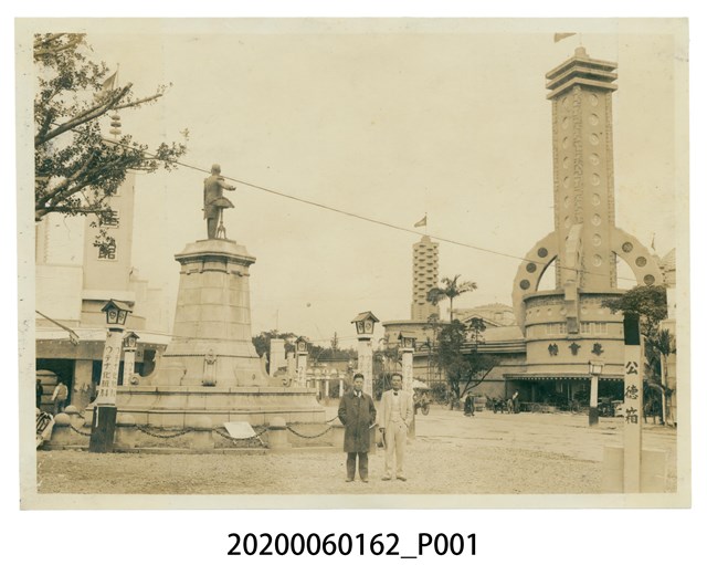 1.本物件為始政四十周年紀念博覽會相關資料,為第二會場「專賣館」附近合影留影。2.始政四十周年記念臺灣博覽會,簡稱臺灣博覽會,是1935年日本統治臺灣40週年時,於該年10月10日至11月28日此50日期間在臺灣各地所舉辦的博覽會,也是臺灣有史以來第1次舉辦全島大型博覽會,同時也是臺灣史上最大型的活動。臺灣總督府在每十年的施政紀念日 (日人稱為「始政記念日」)舉辦展覽會或博覽會這類的紀念性活動,1935年是第四回,其目的在於展現40年來日本政府在臺灣實施的各項建設成果,大力邀請周邊各國和地區參展,讓各國知曉臺灣各種進步情形經濟建設等等。