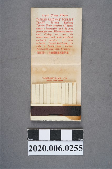 1.本件為數個火柴盒共同組成的文物。內容包含中華少棒球隊紀念火柴、國慶愛國火柴、各東物類或鐵力士鋼筆、三洋電視機等廣告的火柴盒,可以說是早期瓦斯爐尚不盛行,又可達到廣告宣傳的小小載體。2.日本公家單位也曾把火柴盒當作宣導文宣,包含交通安全或環境綠化等標語。臺灣方面,也學習日本將火柴盒作為廣告宣導的媒介(載體),在打火機與瓦斯爐普及前,火柴是臺灣重要的民生物資,因此火柴生產也行程專門產業,商家透過印製宣傳火柴盒作為贈品,用以販售或免費宣傳發送,盒面商標各具特色,例如臺灣火柴公司發行的「自由之火」火柴盒正面使用熊熊火把作為商標。