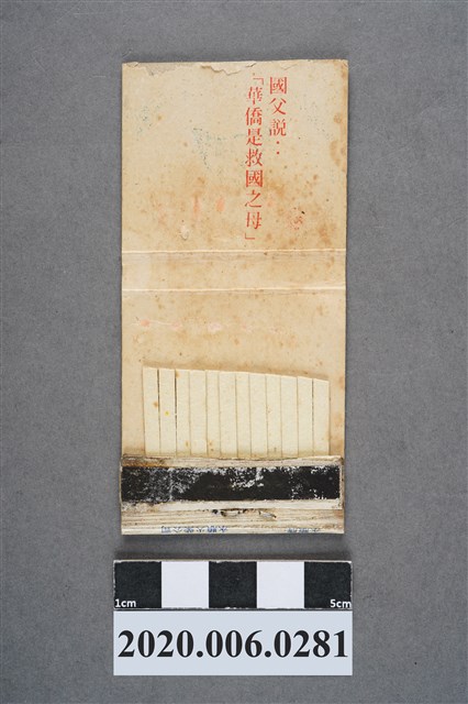 1.本件為數個火柴盒共同組成的文物。內容包含中華少棒球隊紀念火柴、國慶愛國火柴、各東物類或鐵力士鋼筆、三洋電視機等廣告的火柴盒,可以說是早期瓦斯爐尚不盛行,又可達到廣告宣傳的小小載體。2.日本公家單位也曾把火柴盒當作宣導文宣,包含交通安全或環境綠化等標語。臺灣方面,也學習日本將火柴盒作為廣告宣導的媒介(載體),在打火機與瓦斯爐普及前,火柴是臺灣重要的民生物資,因此火柴生產也行程專門產業,商家透過印製宣傳火柴盒作為贈品,用以販售或免費宣傳發送,盒面商標各具特色,例如臺灣火柴公司發行的「自由之火」火柴盒正面使用熊熊火把作為商標。
