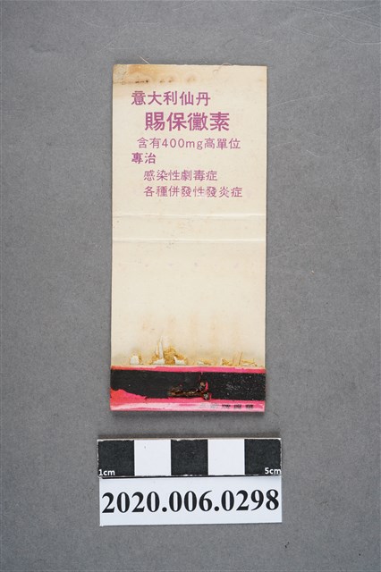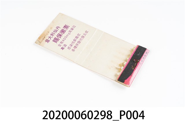 1.本件為數個火柴盒共同組成的文物。內容包含中華少棒球隊紀念火柴、國慶愛國火柴、各東物類或鐵力士鋼筆、三洋電視機等廣告的火柴盒,可以說是早期瓦斯爐尚不盛行,又可達到廣告宣傳的小小載體。2.日本公家單位也曾把火柴盒當作宣導文宣,包含交通安全或環境綠化等標語。臺灣方面,也學習日本將火柴盒作為廣告宣導的媒介(載體),在打火機與瓦斯爐普及前,火柴是臺灣重要的民生物資,因此火柴生產也行程專門產業,商家透過印製宣傳火柴盒作為贈品,用以販售或免費宣傳發送,盒面商標各具特色,例如臺灣火柴公司發行的「自由之火」火柴盒正面使用熊熊火把作為商標。