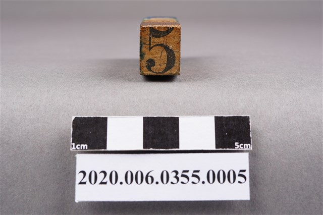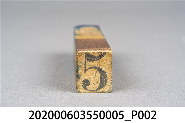1.本物件為真花園號碼章,為木頭製品,底座為1塊很厚長方形木條,木條上面鑿了各8個的洞,另外又做了號碼章,大小剛好可以將章放進底座,目前有的號碼章為1、2、3、5、6、7、10、11、12,整個物件保存完整,唯有明顯斑駁與使用過痕跡。 2. 1907年日本頒布法令,准許台灣人開設妓院,1922年(大正11年)臺南州政府將臺南市內的貸座敷(特種行業)集中在新町以便於管理和整頓風紀,1930年代,府城人戲稱『第一賣冰,第二醫生,第三新町,第四跤筲間』,足以印證特種行業極盛的曾經,隨著日本的戰敗,臺灣經營者面臨政府1946年的廢除公娼、肅娼而難以為繼,最終僅存的日治時期享有盛名的妓女戶之二:新松金樓,已於2005年已經拆除;真花園(臺南市康樂街19號),1座完整的四合院建築,屋主在無力維修的情況下,於2009年05月20日拆下招牌,這也代表真花園是最後一間見證新町歷史的有牌妓女戶,走入歷史。