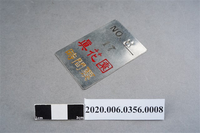 1.本物件為真花園宿夜票與時間票,為鐵製品,分為兩種,橘色字體的為時間票,藍色字體的為宿業票,兩者上面皆有號碼以及寫上「真花園」,旁邊有1個白色塑膠長方盒,可以將票券收納於此,整個物件保存完整。