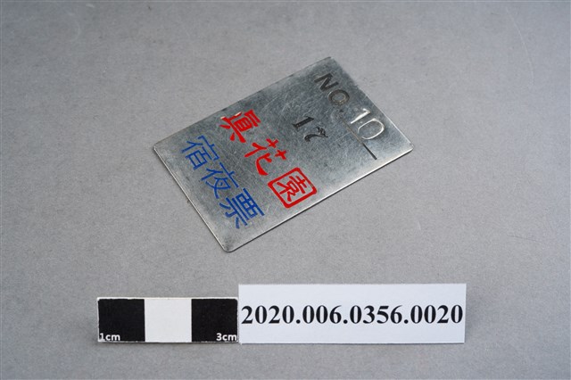 1.本物件為真花園宿夜票與時間票,為鐵製品,分為兩種,橘色字體的為時間票,藍色字體的為宿業票,兩者上面皆有號碼以及寫上「真花園」,旁邊有1個白色塑膠長方盒,可以將票券收納於此,整個物件保存完整。