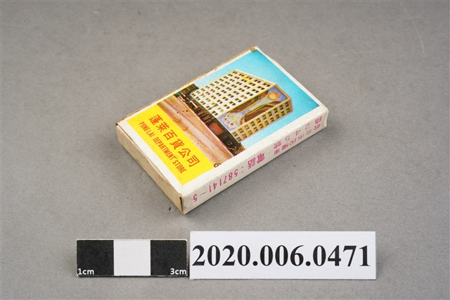 1.餐廳、飯店為主等廣告的火柴盒,可以說是早期瓦斯爐尚不盛行,又可達到廣告宣傳的小小載體。而火柴盒上通常有商家中英文名稱、商標或電話,偶有營業品項或設備,如桃花鄉酒家有電話與強調有冷暖設備、春成八卦窯則強調自家為「專製紅磚」、百利餐廳宣傳自家為法式西餐、飲料名酒、喜慶宴席、正宗中菜等。 2.臺灣在打火機與瓦斯爐普及前,火柴是臺灣重要的民生物資,因此火柴生產也行程專門產業,商家透過印製宣傳火柴盒作為贈品,用以販售或免費宣傳發送,盒面商標各具特色,例如臺灣火柴公司發行的「自由之火」火柴盒正面使用熊熊火把作為商標。而本件文物則有各家飯店的名稱,如圓山大飯店、希爾頓大飯店、六福客棧等,皆是現今仍持續營業的商家。