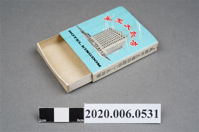 1.餐廳、飯店為主等廣告的火柴盒,可以說是早期瓦斯爐尚不盛行,又可達到廣告宣傳的小小載體。而火柴盒上通常有商家中英文名稱、商標或電話,偶有營業品項或設備,如桃花鄉酒家有電話與強調有冷暖設備、春成八卦窯則強調自家為「專製紅磚」、百利餐廳宣傳自家為法式西餐、飲料名酒、喜慶宴席、正宗中菜等。 2.臺灣在打火機與瓦斯爐普及前,火柴是臺灣重要的民生物資,因此火柴生產也行程專門產業,商家透過印製宣傳火柴盒作為贈品,用以販售或免費宣傳發送,盒面商標各具特色,例如臺灣火柴公司發行的「自由之火」火柴盒正面使用熊熊火把作為商標。而本件文物則有各家飯店的名稱,如圓山大飯店、希爾頓大飯店、六福客棧等,皆是現今仍持續營業的商家。