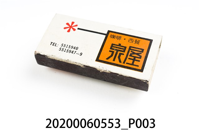 1.餐廳、飯店為主等廣告的火柴盒,可以說是早期瓦斯爐尚不盛行,又可達到廣告宣傳的小小載體。火柴盒的外觀也不限於僅有四角形,開始出現六角形或長方形盒裝,也有外觀如小屋子的造型。 2.臺灣在打火機與瓦斯爐普及前,火柴是臺灣重要的民生物資,因此火柴生產也行程專門產業,商家透過印製宣傳火柴盒作為贈品,用以販售或免費宣傳發送,盒面商標各具特色,例如臺灣火柴公司發行的「自由之火」火柴盒正面使用熊熊火把作為商標。而本件文物則有各家飯店的名稱,有些火柴盒側邊會有廣告公司與或火柴製造商,如有國榮廣告火柴公司承製、地址為新竹市中正路18號(火車站前)、電話則有各地專線(新竹、臺北、高雄)。也隨著火柴廣告公司的出現,火柴盒的廣告呈現方式也有所不同,如部份有明的商家則簡單陳述「臺北‧華西街 台南担仔麵」名稱。