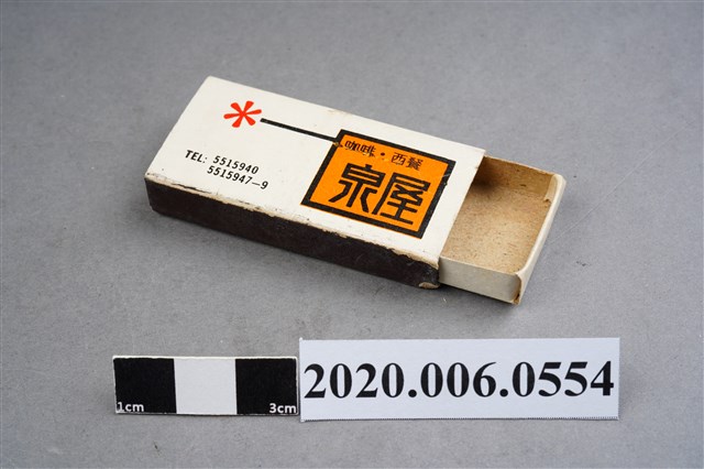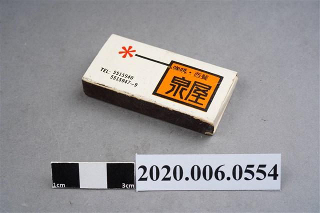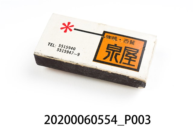 1.餐廳、飯店為主等廣告的火柴盒,可以說是早期瓦斯爐尚不盛行,又可達到廣告宣傳的小小載體。火柴盒的外觀也不限於僅有四角形,開始出現六角形或長方形盒裝,也有外觀如小屋子的造型。 2.臺灣在打火機與瓦斯爐普及前,火柴是臺灣重要的民生物資,因此火柴生產也行程專門產業,商家透過印製宣傳火柴盒作為贈品,用以販售或免費宣傳發送,盒面商標各具特色,例如臺灣火柴公司發行的「自由之火」火柴盒正面使用熊熊火把作為商標。而本件文物則有各家飯店的名稱,有些火柴盒側邊會有廣告公司與或火柴製造商,如有國榮廣告火柴公司承製、地址為新竹市中正路18號(火車站前)、電話則有各地專線(新竹、臺北、高雄)。也隨著火柴廣告公司的出現,火柴盒的廣告呈現方式也有所不同,如部份有明的商家則簡單陳述「臺北‧華西街 台南担仔麵」名稱。