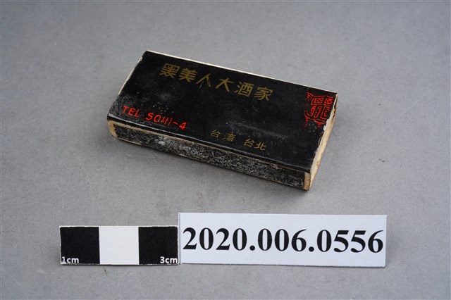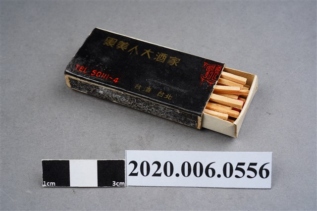 1.餐廳、飯店為主等廣告的火柴盒,可以說是早期瓦斯爐尚不盛行,又可達到廣告宣傳的小小載體。火柴盒的外觀也不限於僅有四角形,開始出現六角形或長方形盒裝,也有外觀如小屋子的造型。 2.臺灣在打火機與瓦斯爐普及前,火柴是臺灣重要的民生物資,因此火柴生產也行程專門產業,商家透過印製宣傳火柴盒作為贈品,用以販售或免費宣傳發送,盒面商標各具特色,例如臺灣火柴公司發行的「自由之火」火柴盒正面使用熊熊火把作為商標。而本件文物則有各家飯店的名稱,有些火柴盒側邊會有廣告公司與或火柴製造商,如有國榮廣告火柴公司承製、地址為新竹市中正路18號(火車站前)、電話則有各地專線(新竹、臺北、高雄)。也隨著火柴廣告公司的出現,火柴盒的廣告呈現方式也有所不同,如部份有明的商家則簡單陳述「臺北‧華西街 台南担仔麵」名稱。