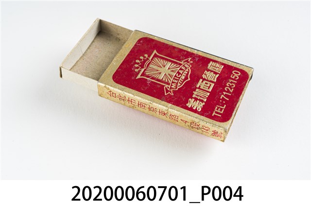 1.內容主要以餐廳、菜館、音響廳、歌廳、夜總會與俱樂部為主的廣告火柴盒。本件文物則有餐廳、店家、歌廳或酒家的名稱。有些火柴盒側邊會有廣告公司與或火柴製造商,如有國榮廣告火柴公司承製、地址為新竹市中正路18號(火車站前)、電話則有各地專線(新竹、臺北、高雄)。也隨著火柴廣告公司的出現,火柴盒的廣告呈現方式也有所不同,類似現今商標LOGO的呈現方式。本件文物的各式餐廳,可以發現類型豐富,包含中式料理、西式料理、越南料理、粵菜料理、日式料理、蒙古烤肉、咖啡店、海產料理。且類型也相當多元,正規西餐廳、一般餐廳、飯店、俱樂部、歌廳、酒家等皆透過火柴盒廣告與宣傳。2.臺灣在打火機與瓦斯爐普及前,火柴是臺灣重要的民生物資,因此火柴生產也行程專門產業,商家透過印製宣傳火柴盒作為贈品,用以販售或免費宣傳發送,盒面商標各具特色,例如臺灣火柴公司發行的「自由之火」火柴盒正面使用熊熊火把作為商標。