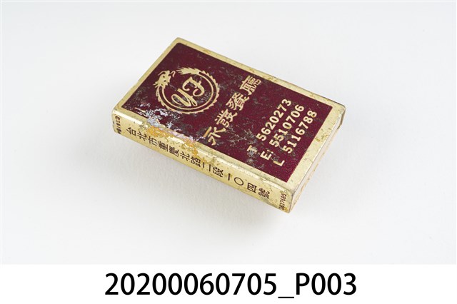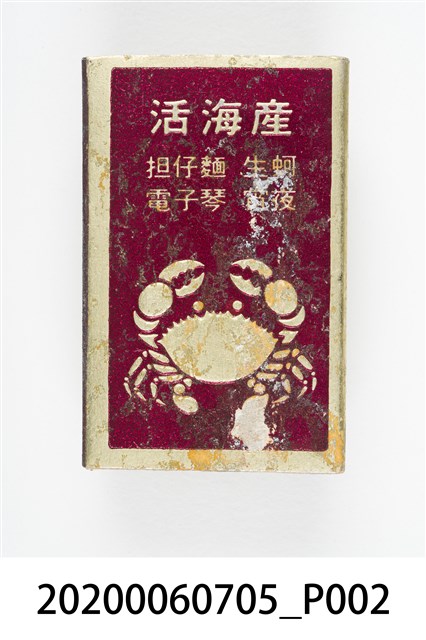 1.內容主要以餐廳、菜館、音響廳、歌廳、夜總會與俱樂部為主的廣告火柴盒。本件文物則有餐廳、店家、歌廳或酒家的名稱。有些火柴盒側邊會有廣告公司與或火柴製造商,如有國榮廣告火柴公司承製、地址為新竹市中正路18號(火車站前)、電話則有各地專線(新竹、臺北、高雄)。也隨著火柴廣告公司的出現,火柴盒的廣告呈現方式也有所不同,類似現今商標LOGO的呈現方式。本件文物的各式餐廳,可以發現類型豐富,包含中式料理、西式料理、越南料理、粵菜料理、日式料理、蒙古烤肉、咖啡店、海產料理。且類型也相當多元,正規西餐廳、一般餐廳、飯店、俱樂部、歌廳、酒家等皆透過火柴盒廣告與宣傳。2.臺灣在打火機與瓦斯爐普及前,火柴是臺灣重要的民生物資,因此火柴生產也行程專門產業,商家透過印製宣傳火柴盒作為贈品,用以販售或免費宣傳發送,盒面商標各具特色,例如臺灣火柴公司發行的「自由之火」火柴盒正面使用熊熊火把作為商標。