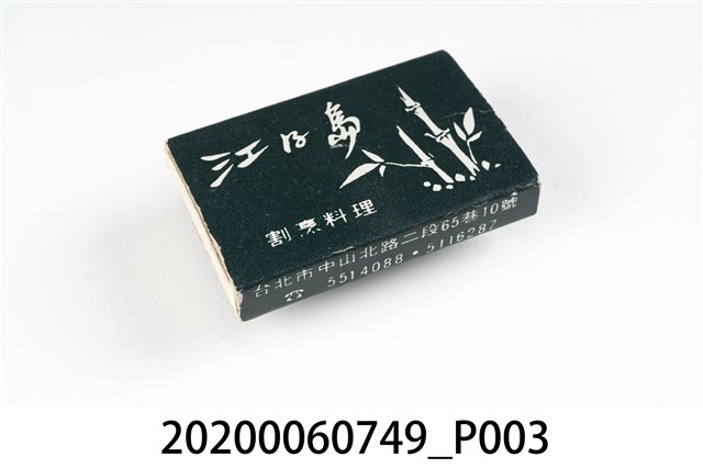 1.內容主要以餐廳、菜館、音響廳、歌廳、夜總會與俱樂部為主的廣告火柴盒。本件文物則有餐廳、店家、歌廳或酒家的名稱。有些火柴盒側邊會有廣告公司與或火柴製造商,如有國榮廣告火柴公司承製、地址為新竹市中正路18號(火車站前)、電話則有各地專線(新竹、臺北、高雄)。也隨著火柴廣告公司的出現,火柴盒的廣告呈現方式也有所不同,類似現今商標LOGO的呈現方式。本件文物的各式餐廳,可以發現類型豐富,包含中式料理、西式料理、越南料理、粵菜料理、日式料理、蒙古烤肉、咖啡店、海產料理。且類型也相當多元,正規西餐廳、一般餐廳、飯店、俱樂部、歌廳、酒家等皆透過火柴盒廣告與宣傳。2.臺灣在打火機與瓦斯爐普及前,火柴是臺灣重要的民生物資,因此火柴生產也行程專門產業,商家透過印製宣傳火柴盒作為贈品,用以販售或免費宣傳發送,盒面商標各具特色,例如臺灣火柴公司發行的「自由之火」火柴盒正面使用熊熊火把作為商標。