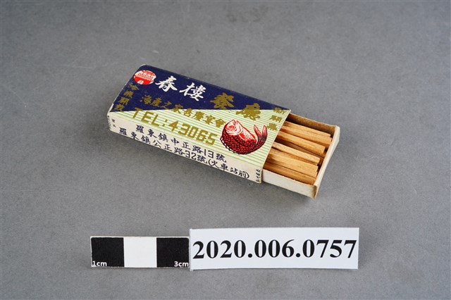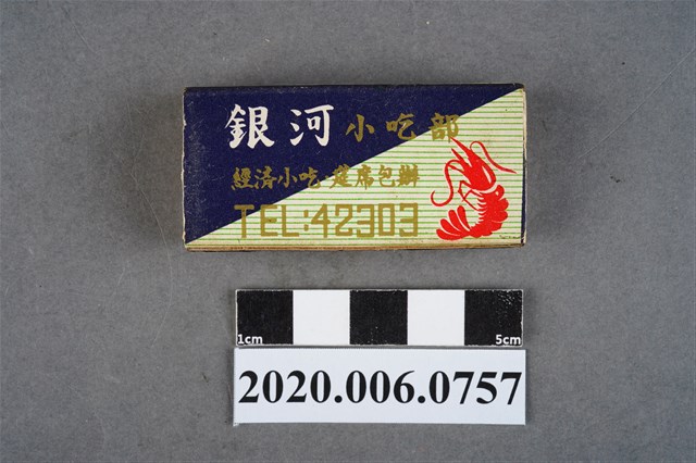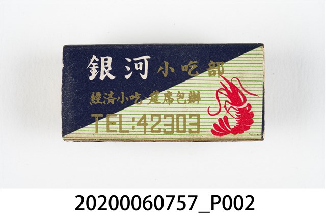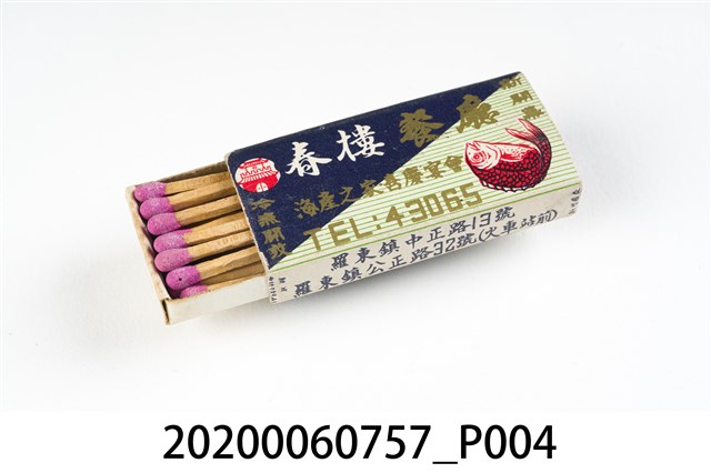 1.內容主要以餐廳、菜館、音響廳、歌廳、夜總會與俱樂部為主的廣告火柴盒。本件文物則有餐廳、店家、歌廳或酒家的名稱。有些火柴盒側邊會有廣告公司與或火柴製造商,如有國榮廣告火柴公司承製、地址為新竹市中正路18號(火車站前)、電話則有各地專線(新竹、臺北、高雄)。也隨著火柴廣告公司的出現,火柴盒的廣告呈現方式也有所不同,類似現今商標LOGO的呈現方式。本件文物的各式餐廳,可以發現類型豐富,包含中式料理、西式料理、越南料理、粵菜料理、日式料理、蒙古烤肉、咖啡店、海產料理。且類型也相當多元,正規西餐廳、一般餐廳、飯店、俱樂部、歌廳、酒家等皆透過火柴盒廣告與宣傳。2.臺灣在打火機與瓦斯爐普及前,火柴是臺灣重要的民生物資,因此火柴生產也行程專門產業,商家透過印製宣傳火柴盒作為贈品,用以販售或免費宣傳發送,盒面商標各具特色,例如臺灣火柴公司發行的「自由之火」火柴盒正面使用熊熊火把作為商標。