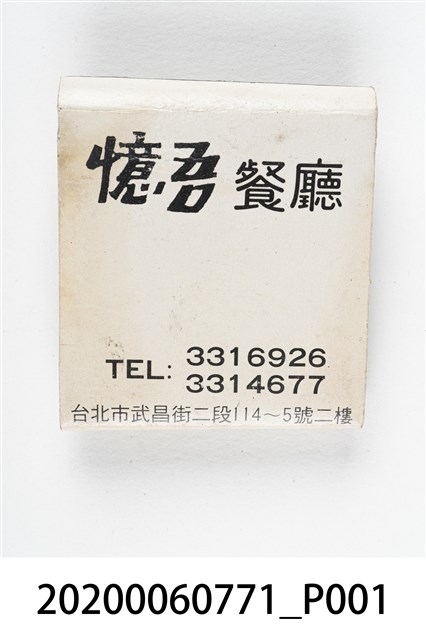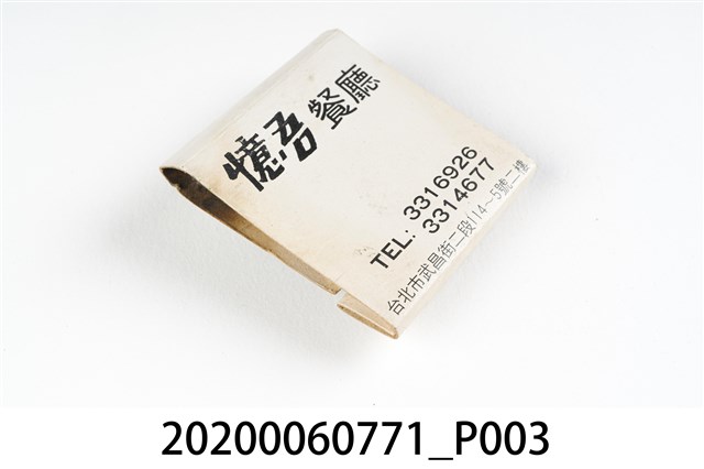 1.內容主要以餐廳、菜館、音響廳、歌廳、夜總會與俱樂部為主的廣告火柴盒。本件文物則有餐廳、店家、歌廳或酒家的名稱。有些火柴盒側邊會有廣告公司與或火柴製造商,如有國榮廣告火柴公司承製、地址為新竹市中正路18號(火車站前)、電話則有各地專線(新竹、臺北、高雄)。也隨著火柴廣告公司的出現,火柴盒的廣告呈現方式也有所不同,類似現今商標LOGO的呈現方式。本件文物的各式餐廳,可以發現類型豐富,包含中式料理、西式料理、越南料理、粵菜料理、日式料理、蒙古烤肉、咖啡店、海產料理。且類型也相當多元,正規西餐廳、一般餐廳、飯店、俱樂部、歌廳、酒家等皆透過火柴盒廣告與宣傳。2.臺灣在打火機與瓦斯爐普及前,火柴是臺灣重要的民生物資,因此火柴生產也行程專門產業,商家透過印製宣傳火柴盒作為贈品,用以販售或免費宣傳發送,盒面商標各具特色,例如臺灣火柴公司發行的「自由之火」火柴盒正面使用熊熊火把作為商標。