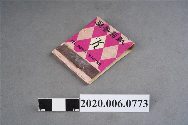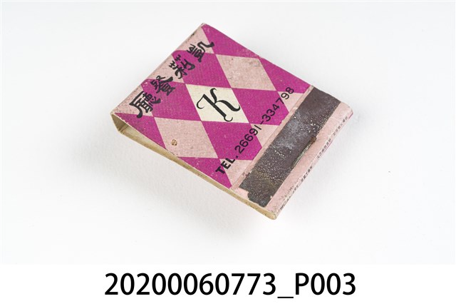 1.內容主要以餐廳、菜館、音響廳、歌廳、夜總會與俱樂部為主的廣告火柴盒。本件文物則有餐廳、店家、歌廳或酒家的名稱。有些火柴盒側邊會有廣告公司與或火柴製造商,如有國榮廣告火柴公司承製、地址為新竹市中正路18號(火車站前)、電話則有各地專線(新竹、臺北、高雄)。也隨著火柴廣告公司的出現,火柴盒的廣告呈現方式也有所不同,類似現今商標LOGO的呈現方式。本件文物的各式餐廳,可以發現類型豐富,包含中式料理、西式料理、越南料理、粵菜料理、日式料理、蒙古烤肉、咖啡店、海產料理。且類型也相當多元,正規西餐廳、一般餐廳、飯店、俱樂部、歌廳、酒家等皆透過火柴盒廣告與宣傳。2.臺灣在打火機與瓦斯爐普及前,火柴是臺灣重要的民生物資,因此火柴生產也行程專門產業,商家透過印製宣傳火柴盒作為贈品,用以販售或免費宣傳發送,盒面商標各具特色,例如臺灣火柴公司發行的「自由之火」火柴盒正面使用熊熊火把作為商標。