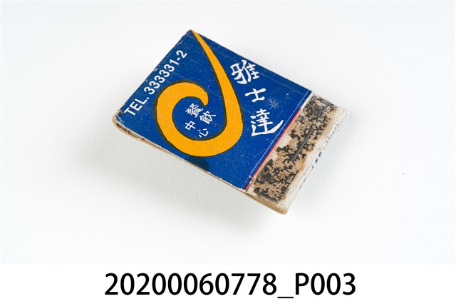 1.內容主要以餐廳、菜館、音響廳、歌廳、夜總會與俱樂部為主的廣告火柴盒。本件文物則有餐廳、店家、歌廳或酒家的名稱。有些火柴盒側邊會有廣告公司與或火柴製造商,如有國榮廣告火柴公司承製、地址為新竹市中正路18號(火車站前)、電話則有各地專線(新竹、臺北、高雄)。也隨著火柴廣告公司的出現,火柴盒的廣告呈現方式也有所不同,類似現今商標LOGO的呈現方式。本件文物的各式餐廳,可以發現類型豐富,包含中式料理、西式料理、越南料理、粵菜料理、日式料理、蒙古烤肉、咖啡店、海產料理。且類型也相當多元,正規西餐廳、一般餐廳、飯店、俱樂部、歌廳、酒家等皆透過火柴盒廣告與宣傳。2.臺灣在打火機與瓦斯爐普及前,火柴是臺灣重要的民生物資,因此火柴生產也行程專門產業,商家透過印製宣傳火柴盒作為贈品,用以販售或免費宣傳發送,盒面商標各具特色,例如臺灣火柴公司發行的「自由之火」火柴盒正面使用熊熊火把作為商標。