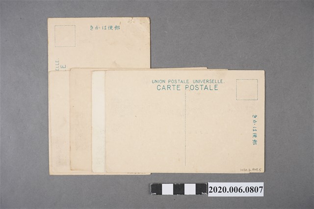 1.本物件為江山樓明信片組。為紙製材質,共有5張,4張為橫式,1張為直式。其1為江山樓四樓的浴場場景,其2為江山樓的全景照,其3為江山樓的樓頂庭園照,其4為江山樓三樓的宴會廳,其5為江山樓的老闆吳江山的照片。2.江山樓是由吳江山於1917年創立,位於臺北大稻埕,與「東薈芳」、「春風樓」、「蓬萊閣」並稱為四大酒家。吳江山原為東薈芳的股東,後因股東派系鬥爭,而退出獨資開設江山樓。江山樓為4層樓紅磚建築,設有女侍服務與飲酒空間,以臺灣第一中國料理」為招牌,吸引政商名流、文人雅士流連。當時有俗諺「登江山樓,吃臺灣菜,聽藝旦唱曲」,道盡江山樓盛況。戰後江山樓停業。