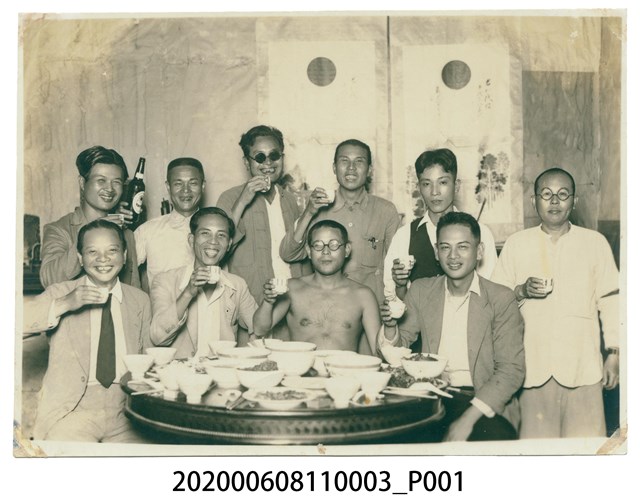 1.本件長26.2公分、寬20.5公分、高0.1公分,為5張黑白照片組成的文物。地點主要為江山樓或山水亭等極富盛名的臺菜餐廳。內容包含蔡氏宗親會第1回總會攝影紀念竹中會送別紀念、竹中送別會、歡迎會等。服飾方面以西裝為主,也有學生制服或者是打赤膊者。2.江山樓於1917年由吳江山設立,地點位於臺北大稻埕,與「東薈芳」、「春風樓」、「蓬萊閣」並稱為四大旗亭,其中江山樓居首,而有「江東春蓬」之稱,原址位於日新町二丁目一八六番(今臺北市大同區重慶北路、保安街、歸綏街與甘州街所圍成的區塊)。由於江山樓被視為是日治時期臺灣最負盛名的臺灣料理屋。1923年昭和太子來臺行啟,江山樓和東薈芳共同承辦臺灣料理宴席作為招待,江山樓負責烹調昭和太子的膳食,也因此次任務極為成功,聲名遠揚,成為海內外首屈一指的臺灣料理名店。