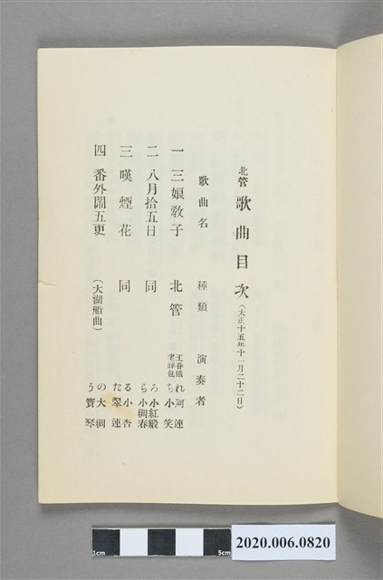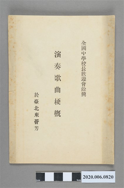 全國中學校長歡迎會餘興臺北東薈芳演奏歌曲梗概