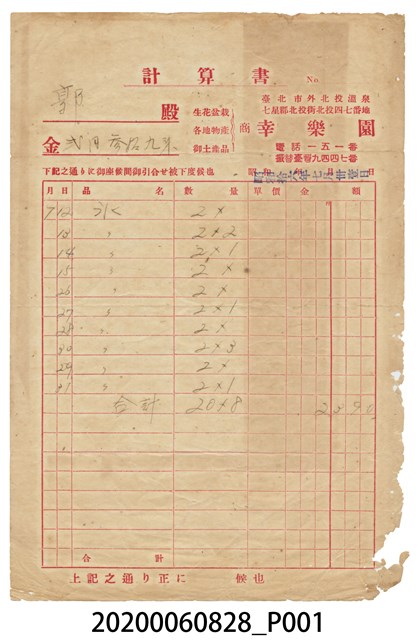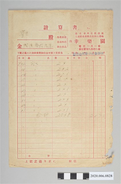 2020.006.0828 幸樂園點餐收據