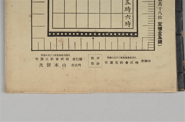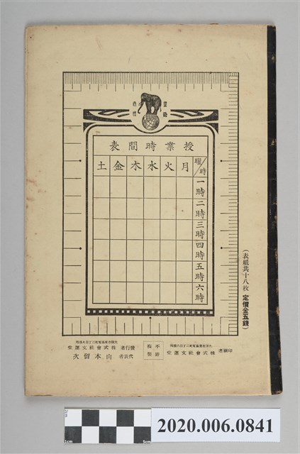 1.本物件為株式會社文運堂發行《唱歌帳》,為直式歌唱帳,封面上畫有1對男女生拿著本子唱歌,旁邊還有許多音符的記號,下方可以寫下學科名稱及年級資料,背面畫有功課表格式,並且寫下印刷者「株式會社文運堂」。