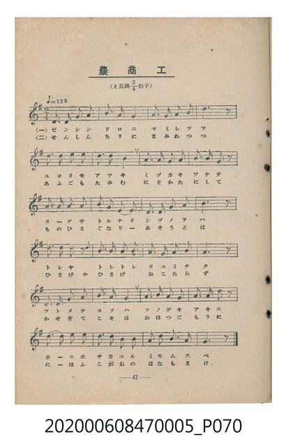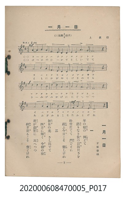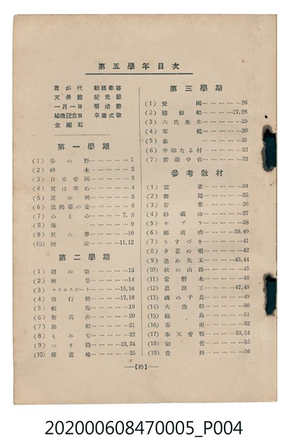 2020.006.0847.0005 日本教育唱歌研究會編《新定兒童唱歌》尋常科第五學年